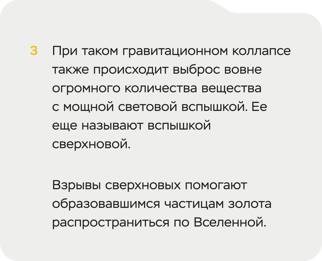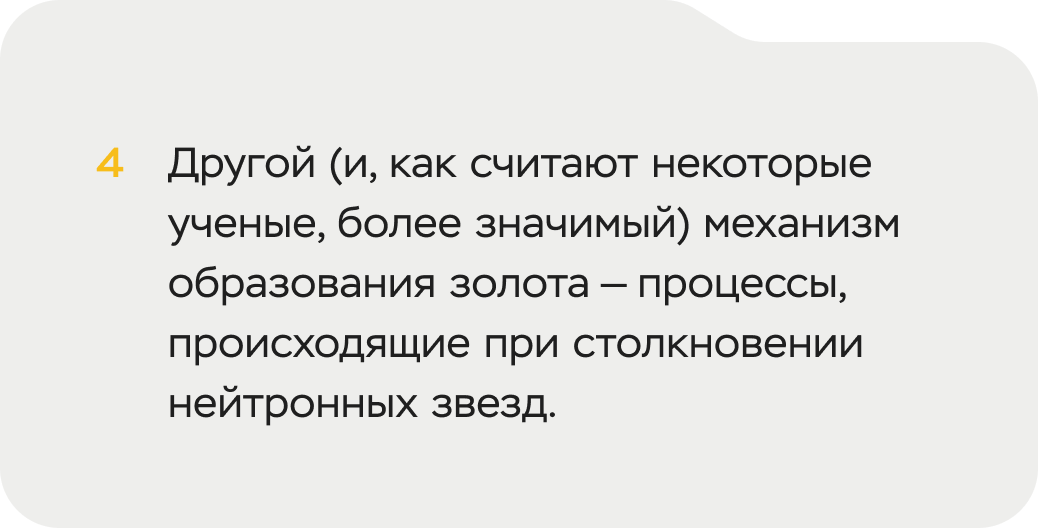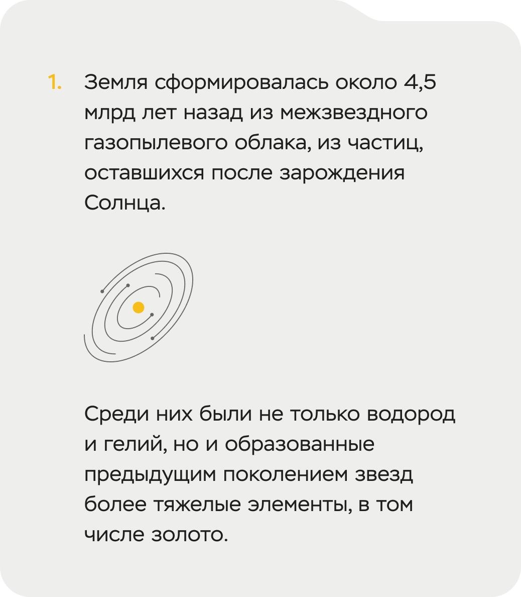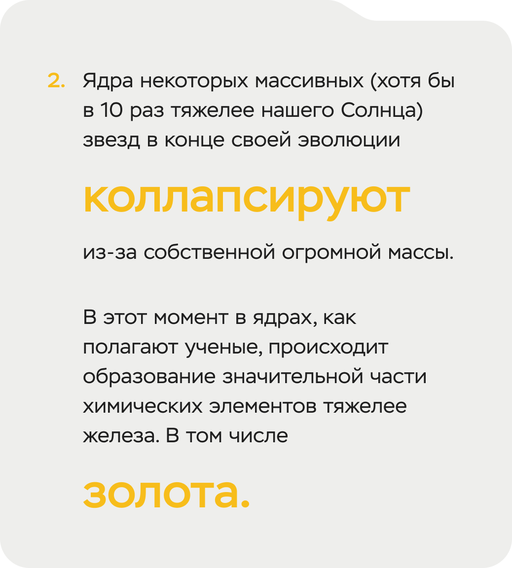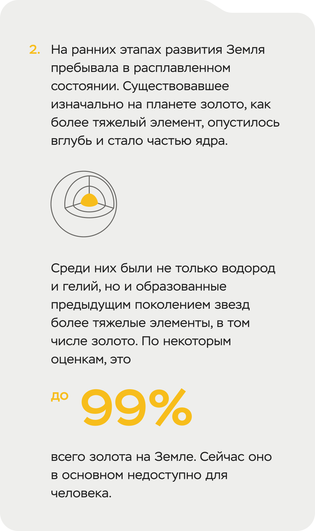 Между тем золото из Вашего кольца могло родиться несколько миллиардов лет назад в недрах звезды на огромном расстоянии от нашей планеты. И даже попав на Землю, оно проделало огромный путь, чтобы оказаться у Вас на руке.